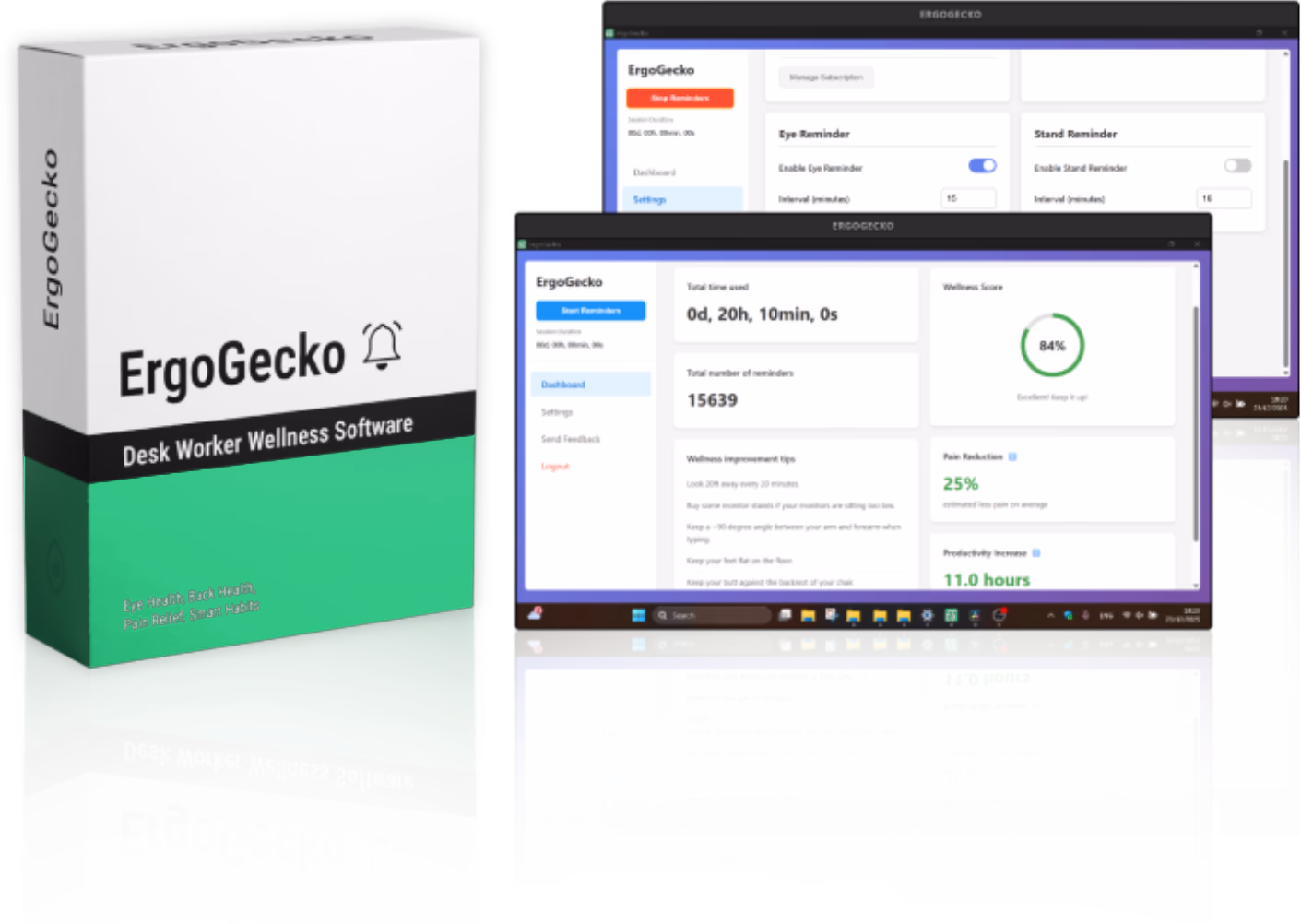 Smart Reminders for Desk Worker related pain. Reduce eye strain, neck & back pain from long hours at the computer. Help prevent cardiovascular disease. Protect your body and your health.
